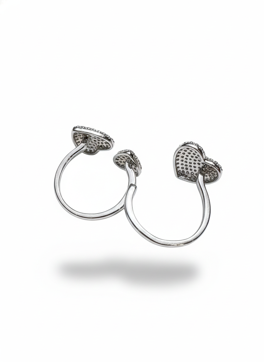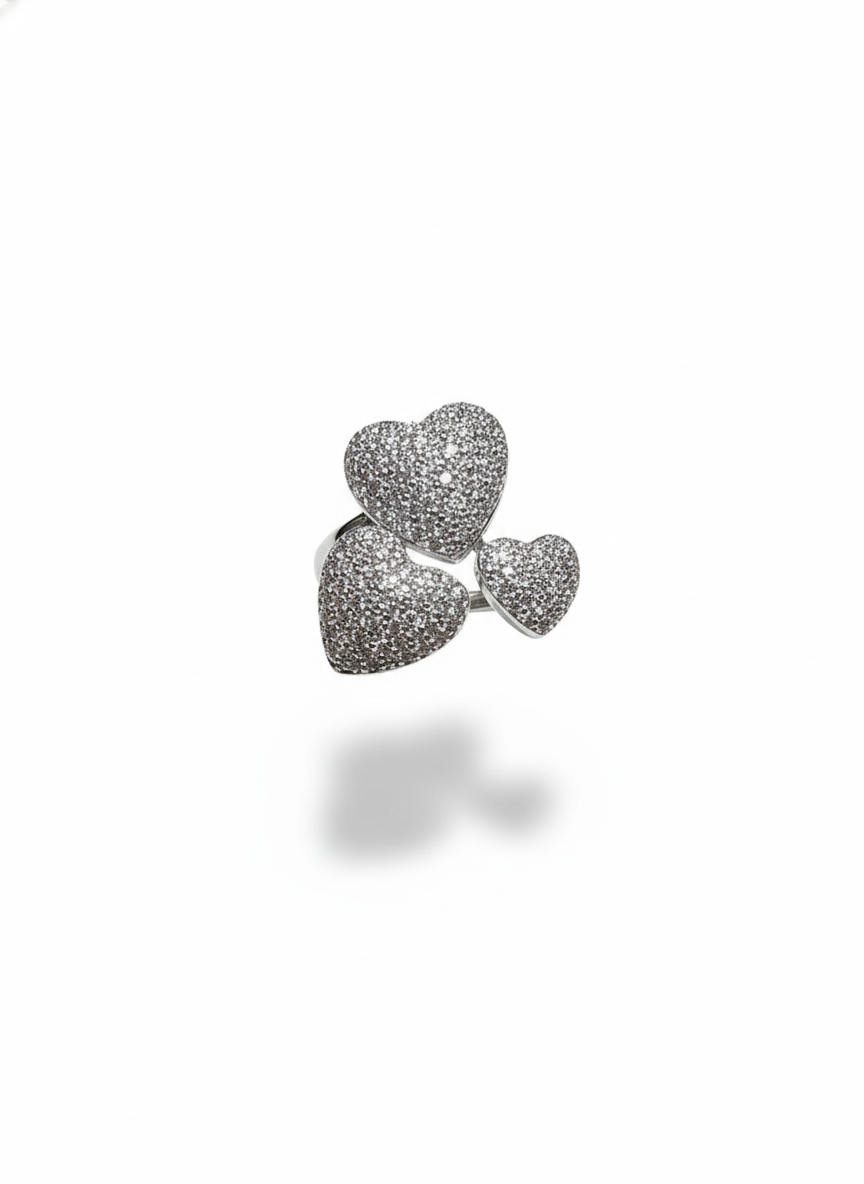These rings feature pave-set hearts that sparkle with a soft, romantic brilliance. Each heart is delicately sculpted and densely encrusted with stones, creating a luxurious, light-catching finish. Sweet yet sophisticated, they blend charm and elegance in a timeless, radiant design.