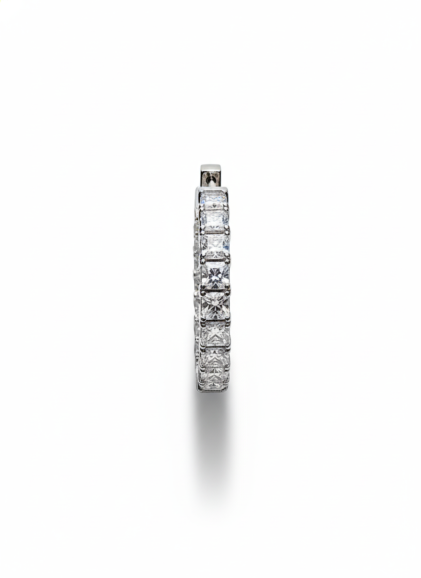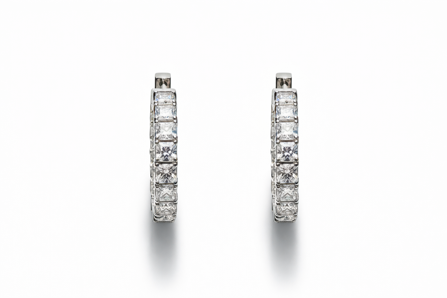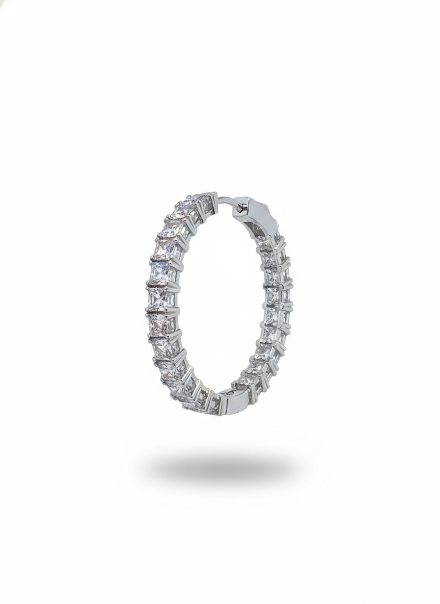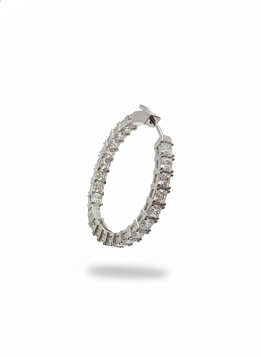 These hoops feature two intertwined rows of radiant stones that twist gracefully, creating a dynamic shimmer from every angle. The elegant crossover design adds depth and movement, giving the earrings a modern yet timeless sophistication. Sparkling, sculptural, and effortlessly glamorous—perfect for elevating any look with refined brilliance.