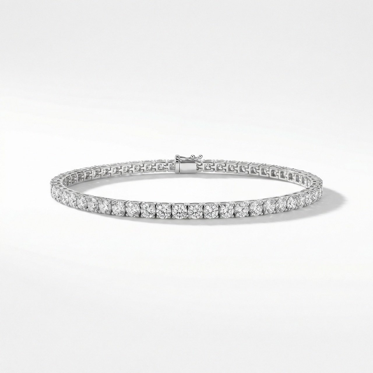 A timeless tennis bracelet lined with brilliant round-cut stones, offering sleek elegance and everyday sophistication. Perfect for stacking or wearing solo for a refined sparkle.