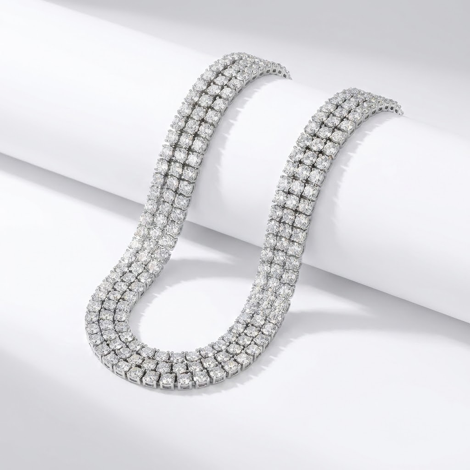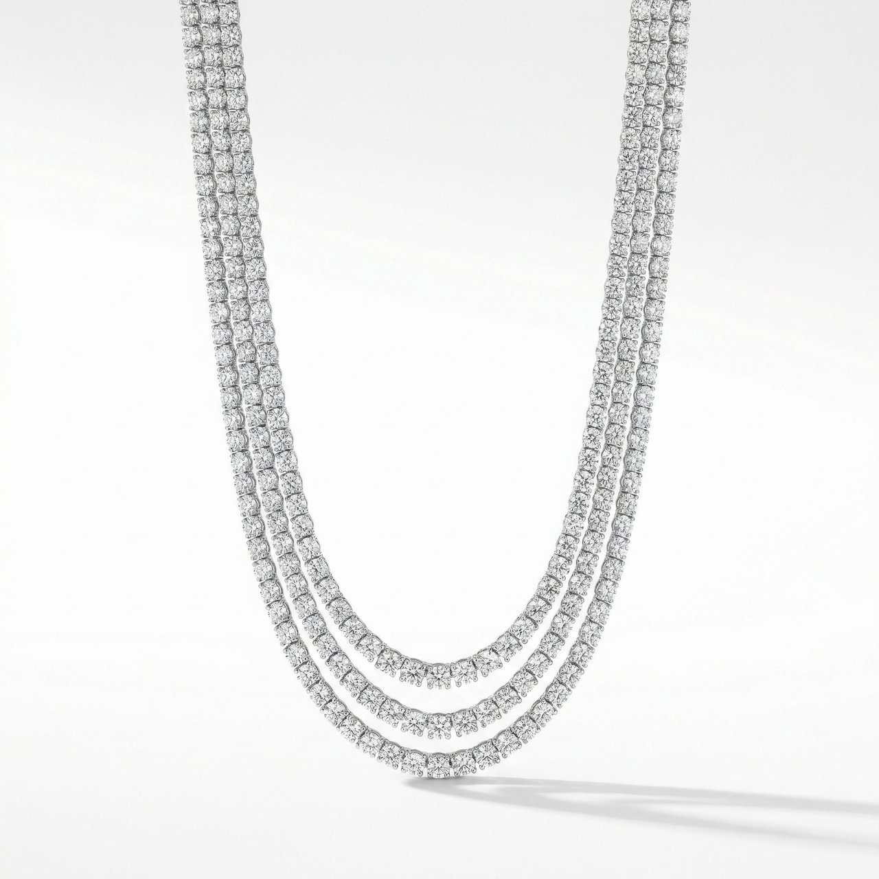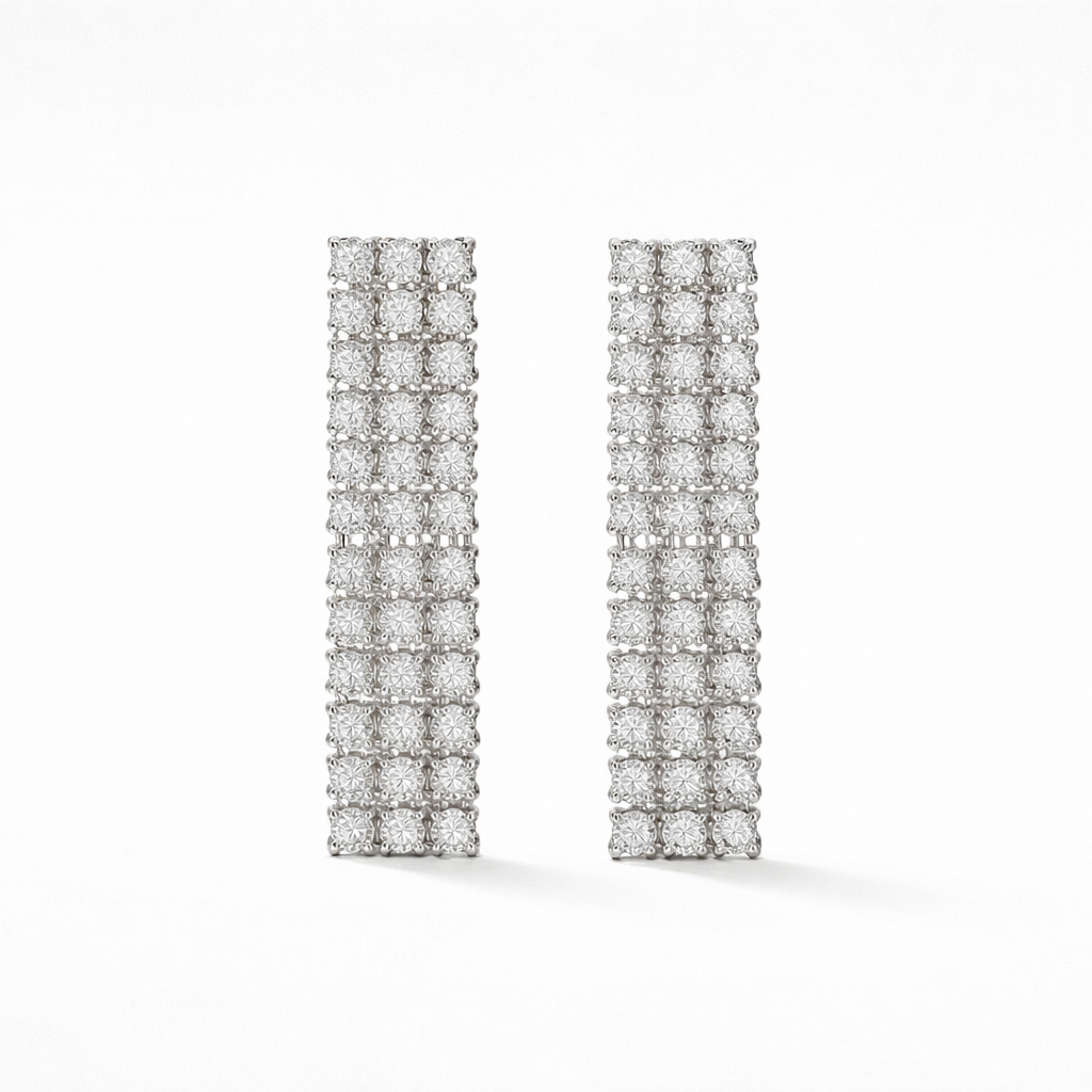 A refined three-layer necklace crafted with rows of shimmering stones that drape gracefully along the neckline. Each strand catches the light with effortless brilliance, creating a soft, radiant glow. Paired with matching cascading earrings, this set offers a timeless blend of elegance and sophistication—perfect for evening occasions, celebrations, or adding a polished touch to any special outfit. Its minimal yet luxurious design makes it a versatile staple for every jewellery collection.